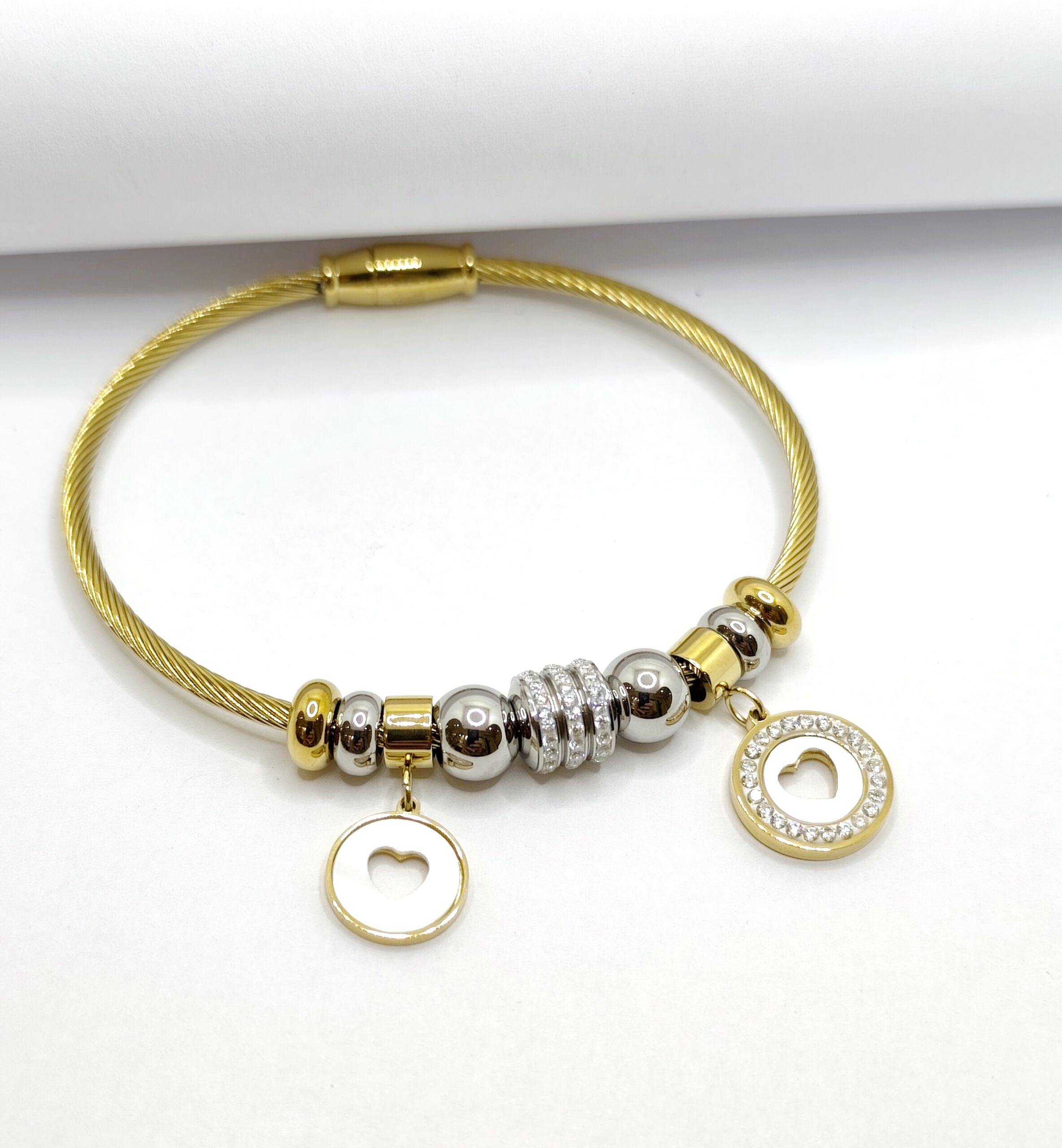 Χειροπέδα από ανοξείδωτο ατσάλι σε κίτρινο και λευκό χρώμα, ιδανικό για κάθε περίσταση.