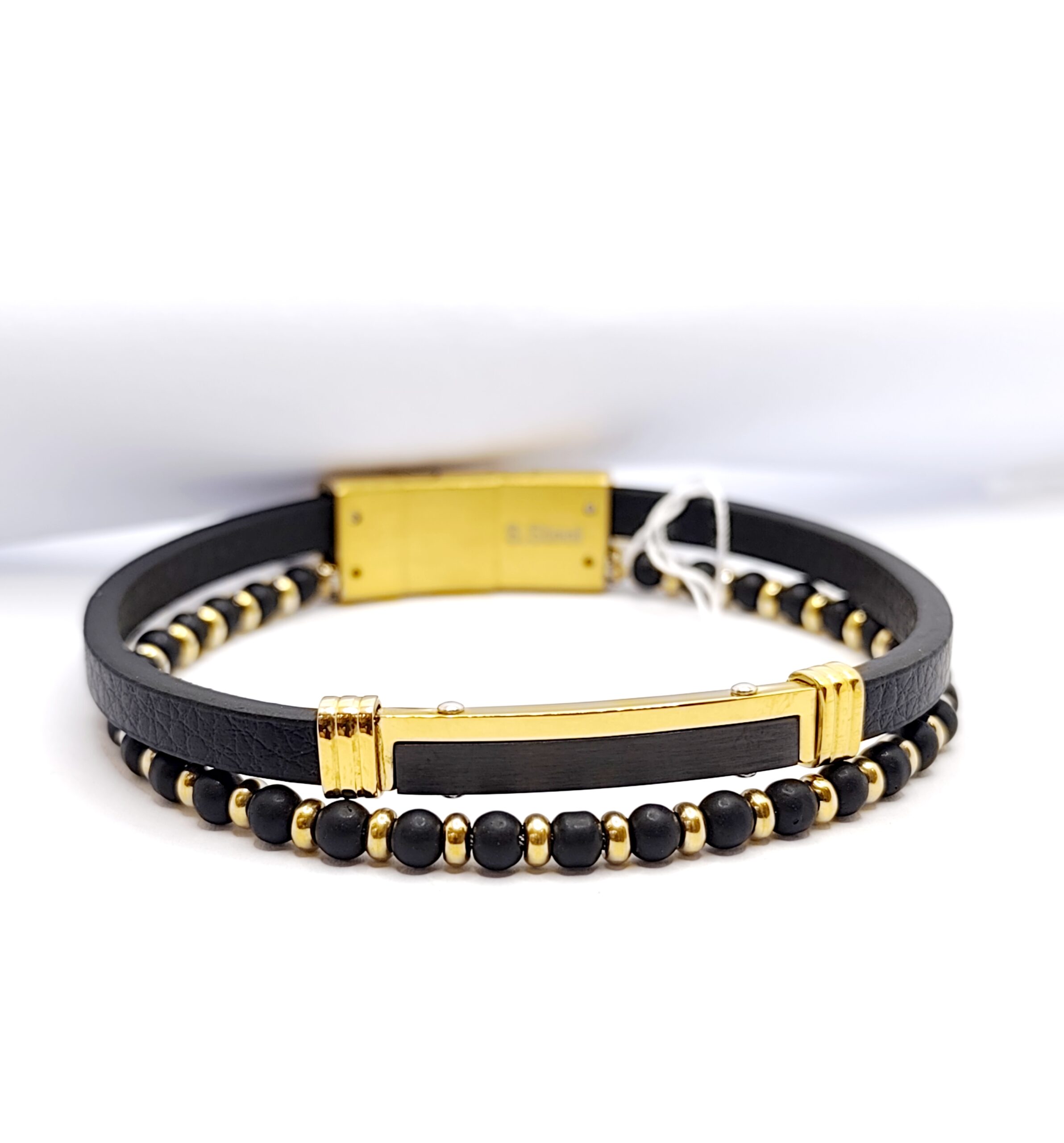 Βραχιόλι με διπλή αλυσίδα από ανοξείδωτο ατσάλι και δέρμα.