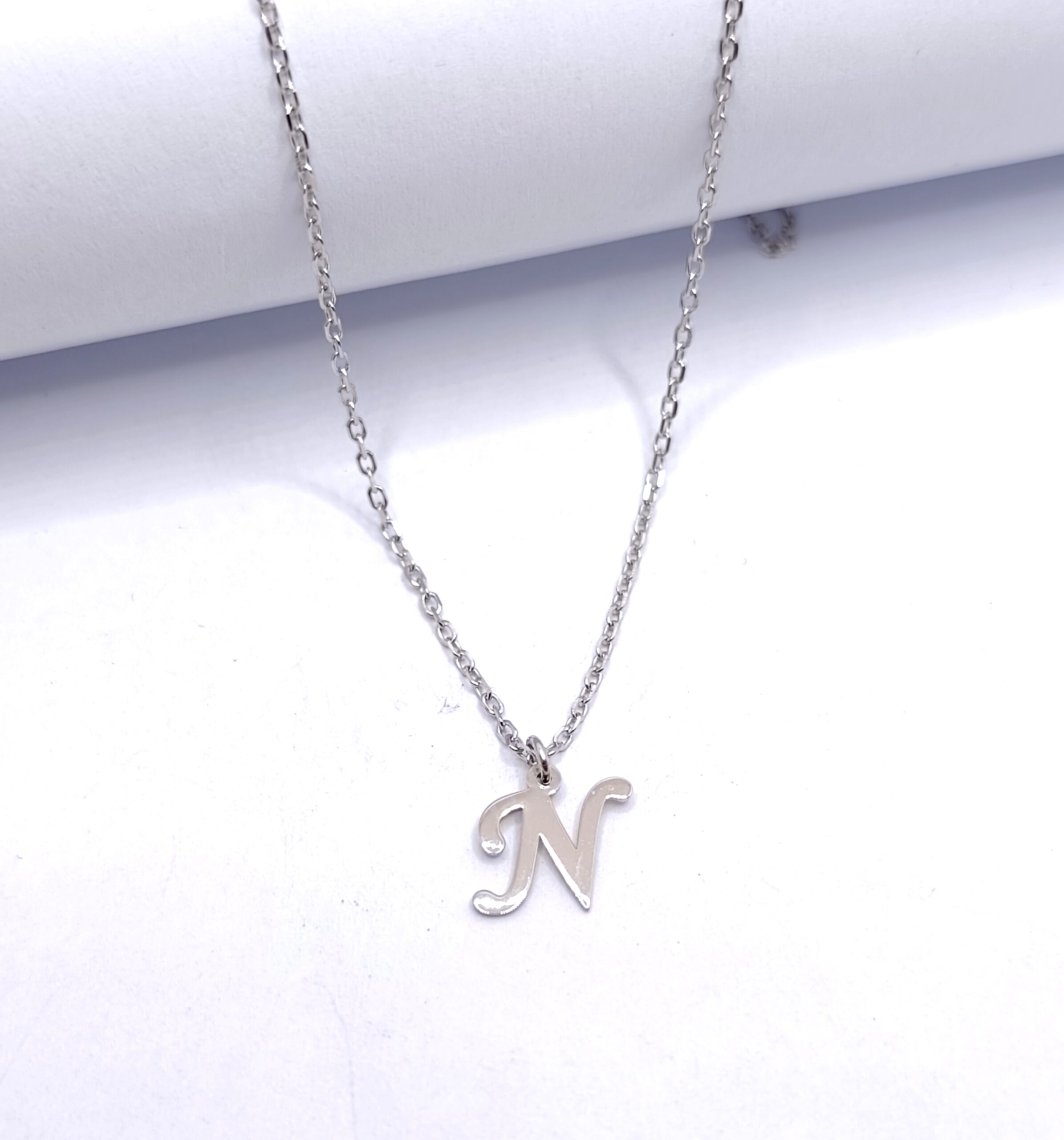 Κολιέ με το μονόγραμμα “Ν”, από επιπλατινωμένο ασήμι 925 σε λευκό χρώμα.