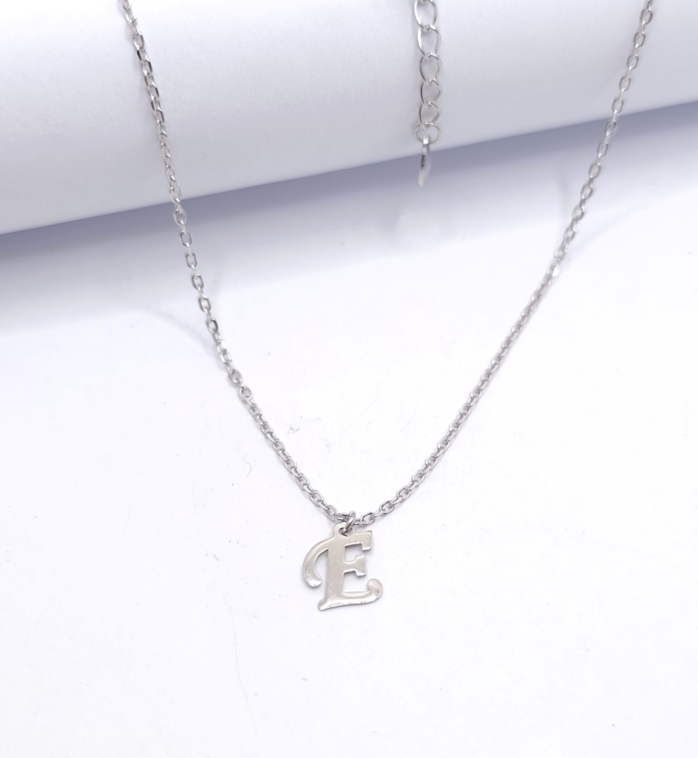 Κολιέ με το μονόγραμμα “Ε”, από επιπλατινωμένο ασήμι 925 σε λευκό χρώμα.