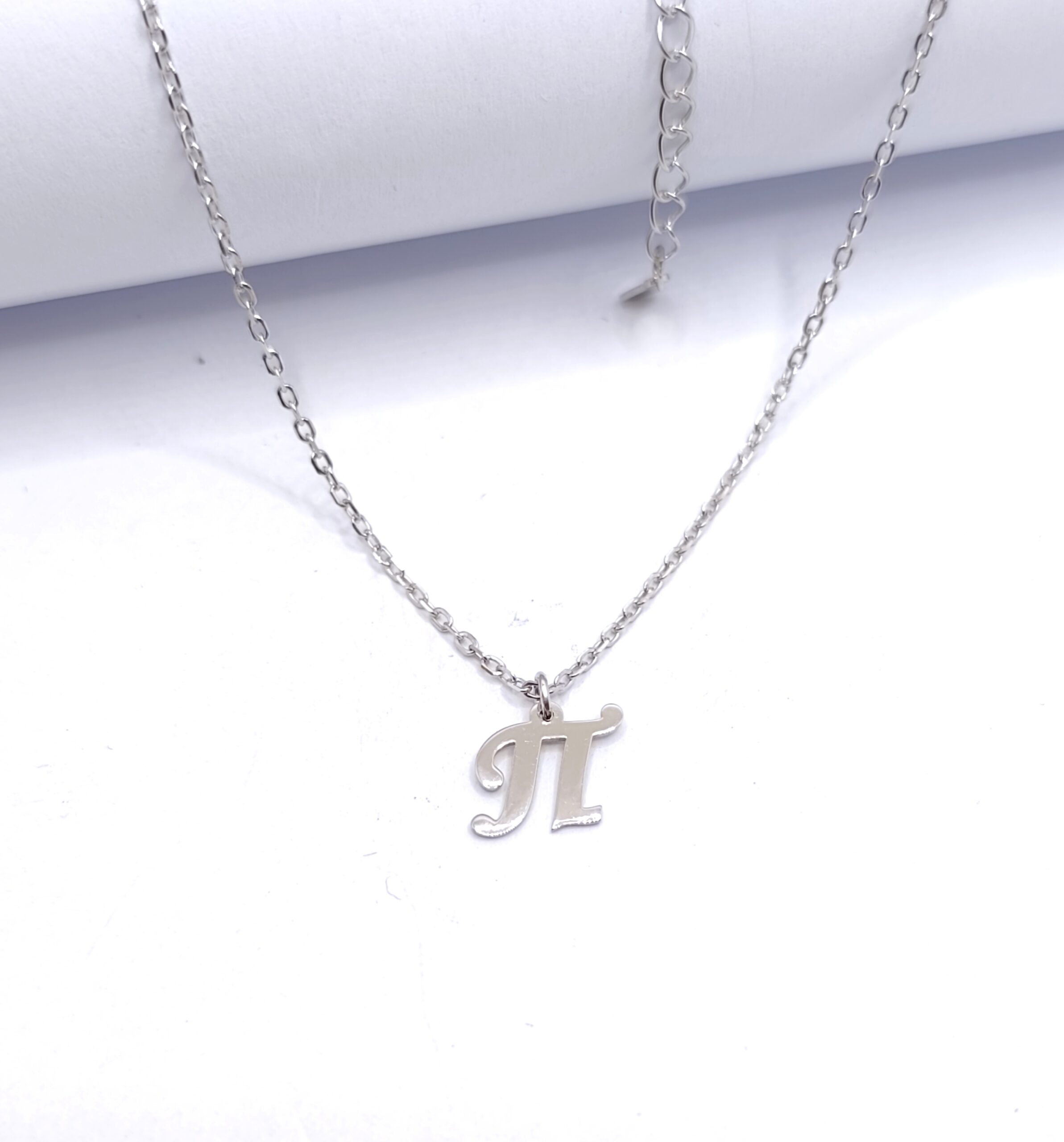 Κολιέ με το μονόγραμμα “Π”, από επιπλατινωμένο ασήμι 925 σε λευκό χρώμα.