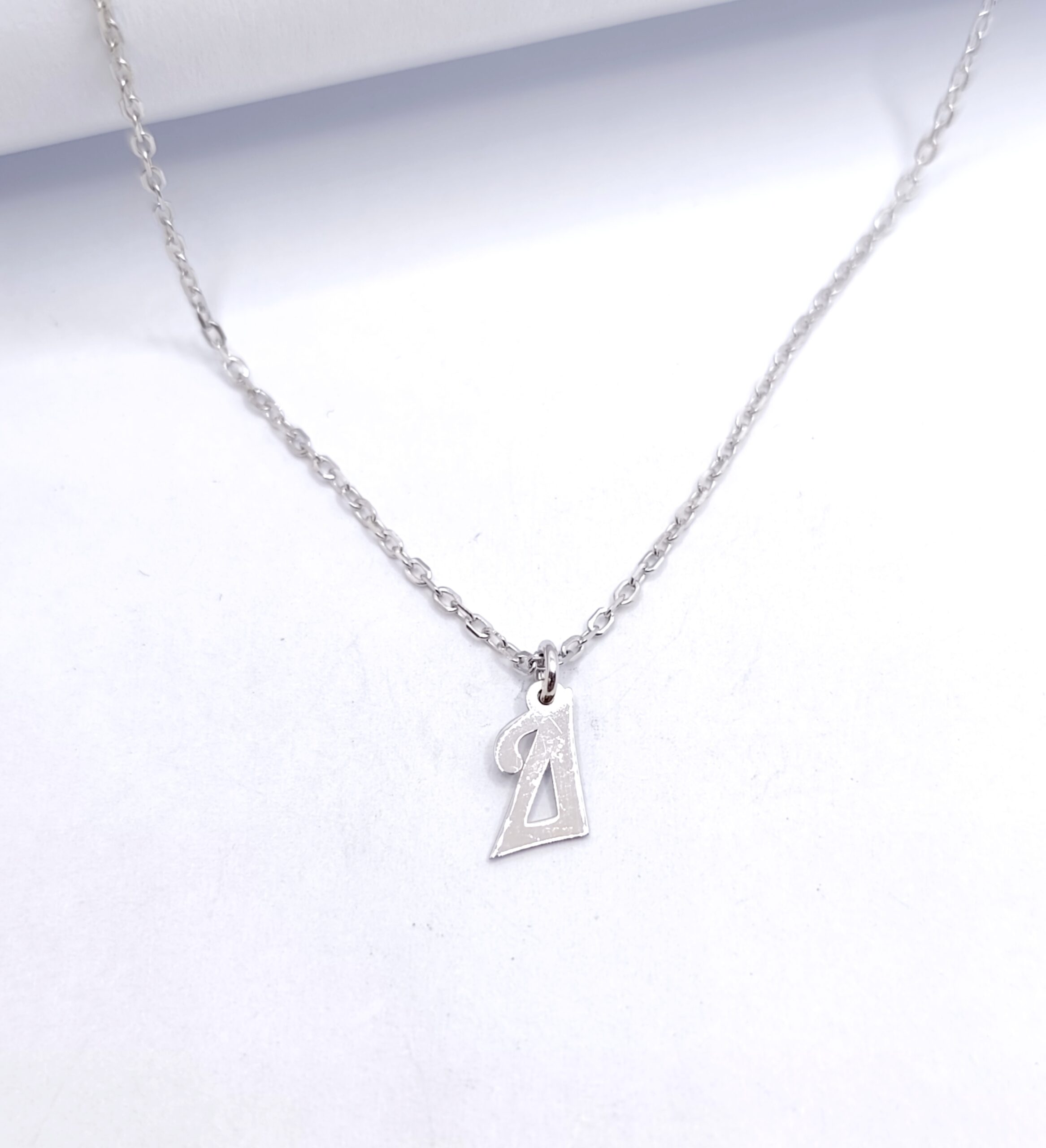 Κολιέ με το μονόγραμμα “Δ”, από επιπλατινωμένο ασήμι 925 σε λευκό χρώμα.