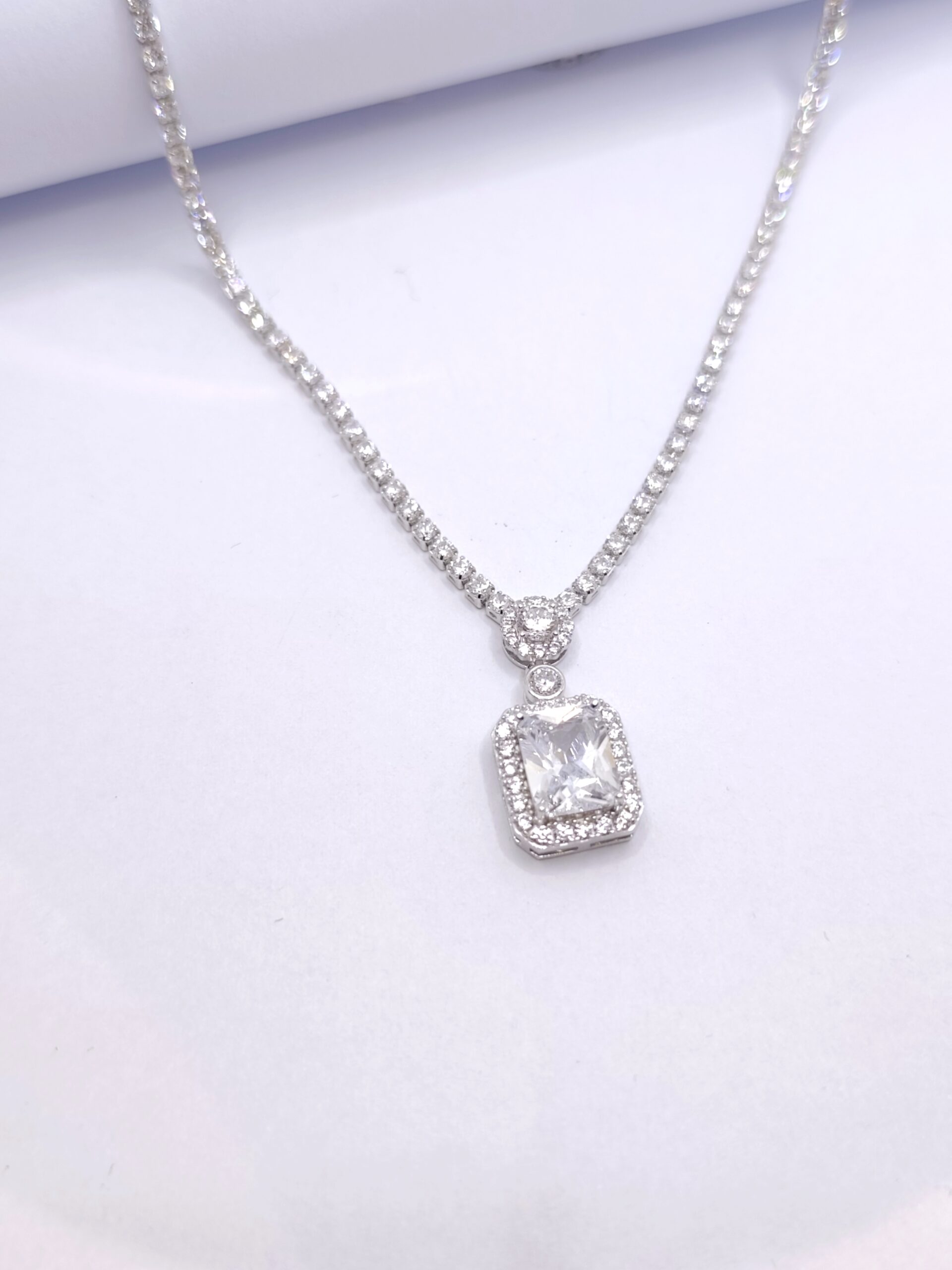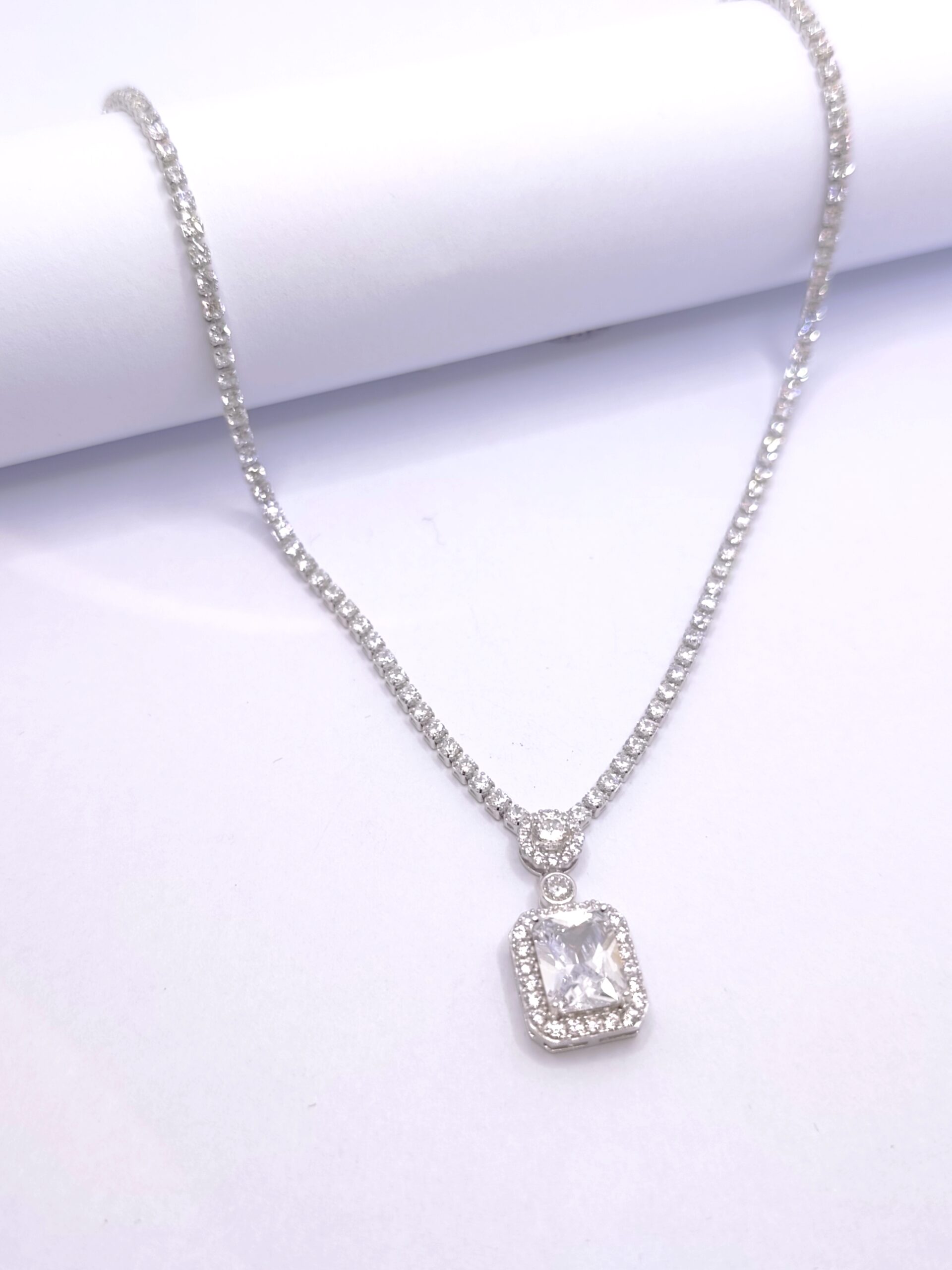 Κολιέ ριβιέρα από επιπλατινωμένο ασήμι 925 σε λευκό χρώμα.