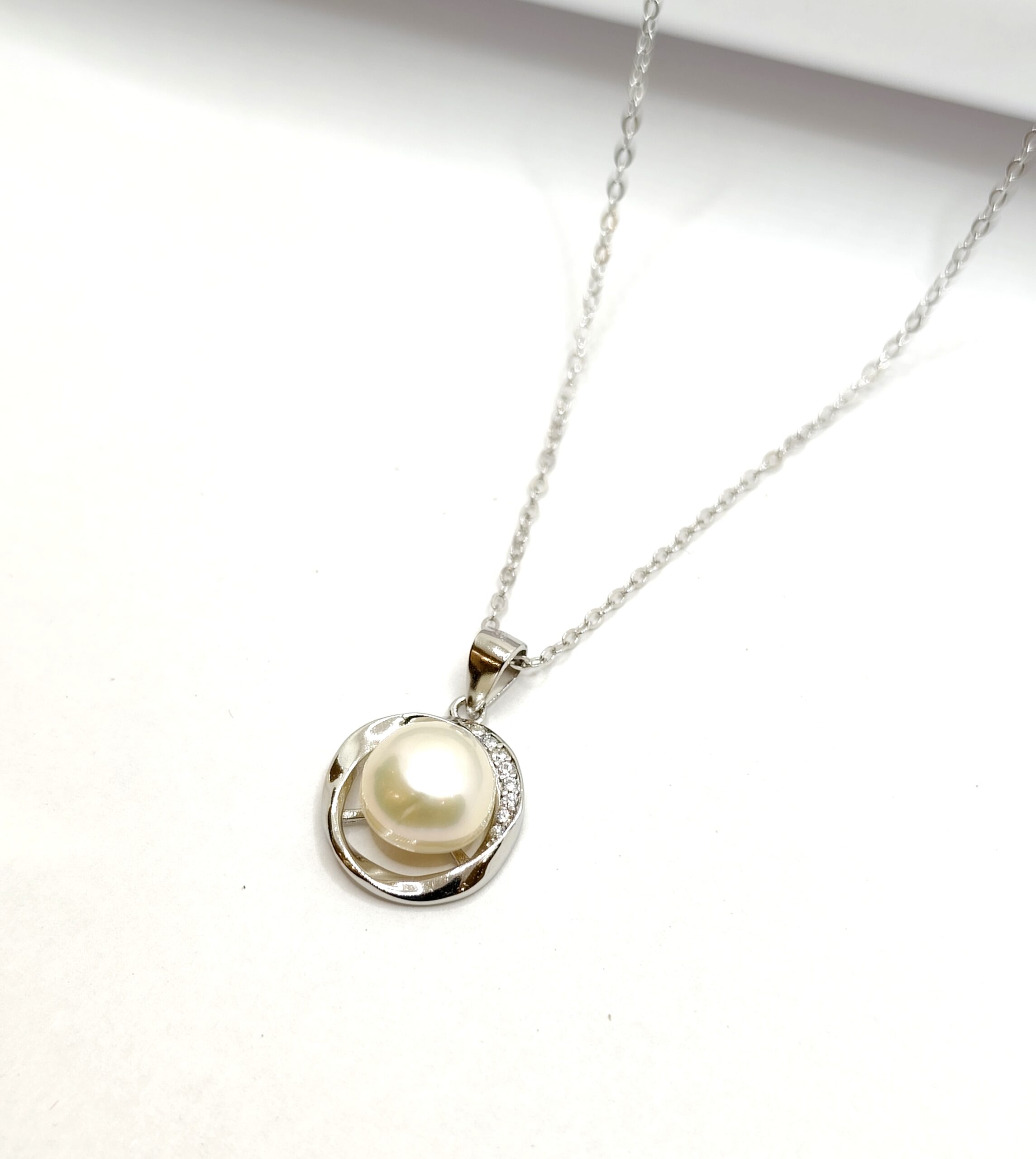 Κολιέ από επιπλατινωμένο ασήμι 925 σε λευκό χρώμα.