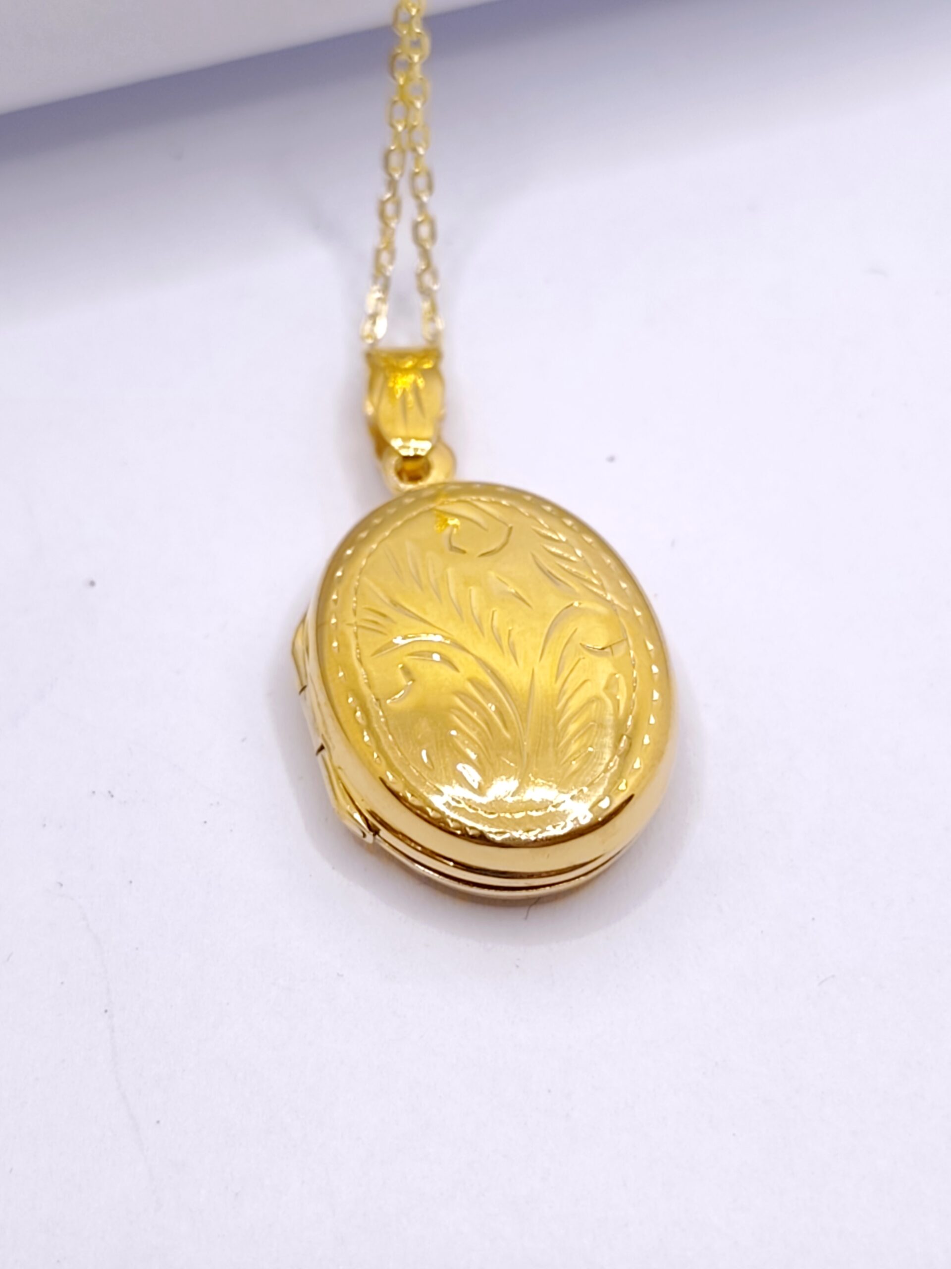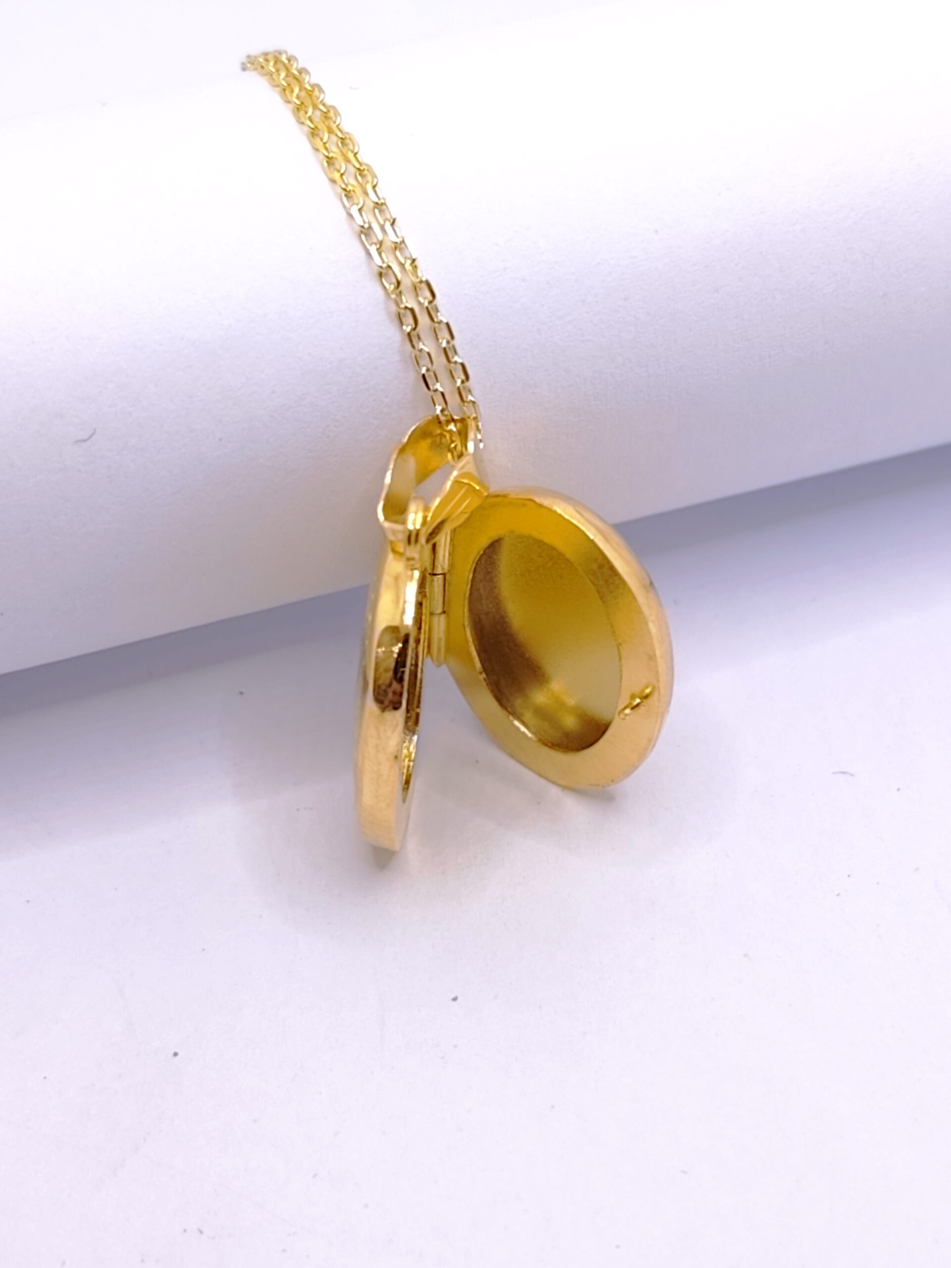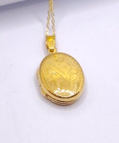 Μενταγιόν που ανοίγει για φωτογραφίες, με σκαλιστό σχέδιο, από επιχρυσωμένο ασήμι 925 σε κίτρινο χρώμα.