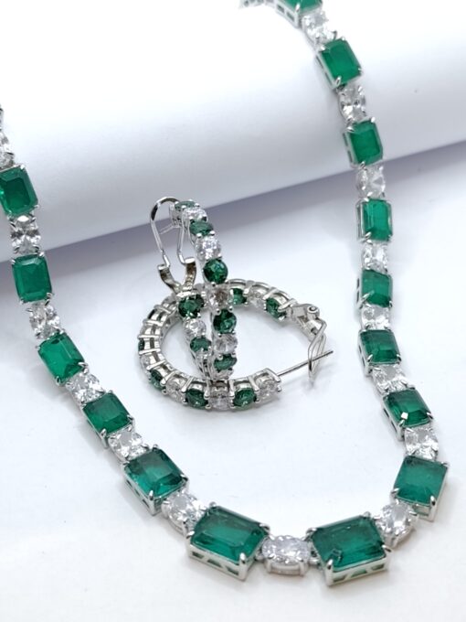 Σετ κολιέ και σκουλαρίκια από επιπλατινωμένο ασήμι 925 λευκού χρώματος.