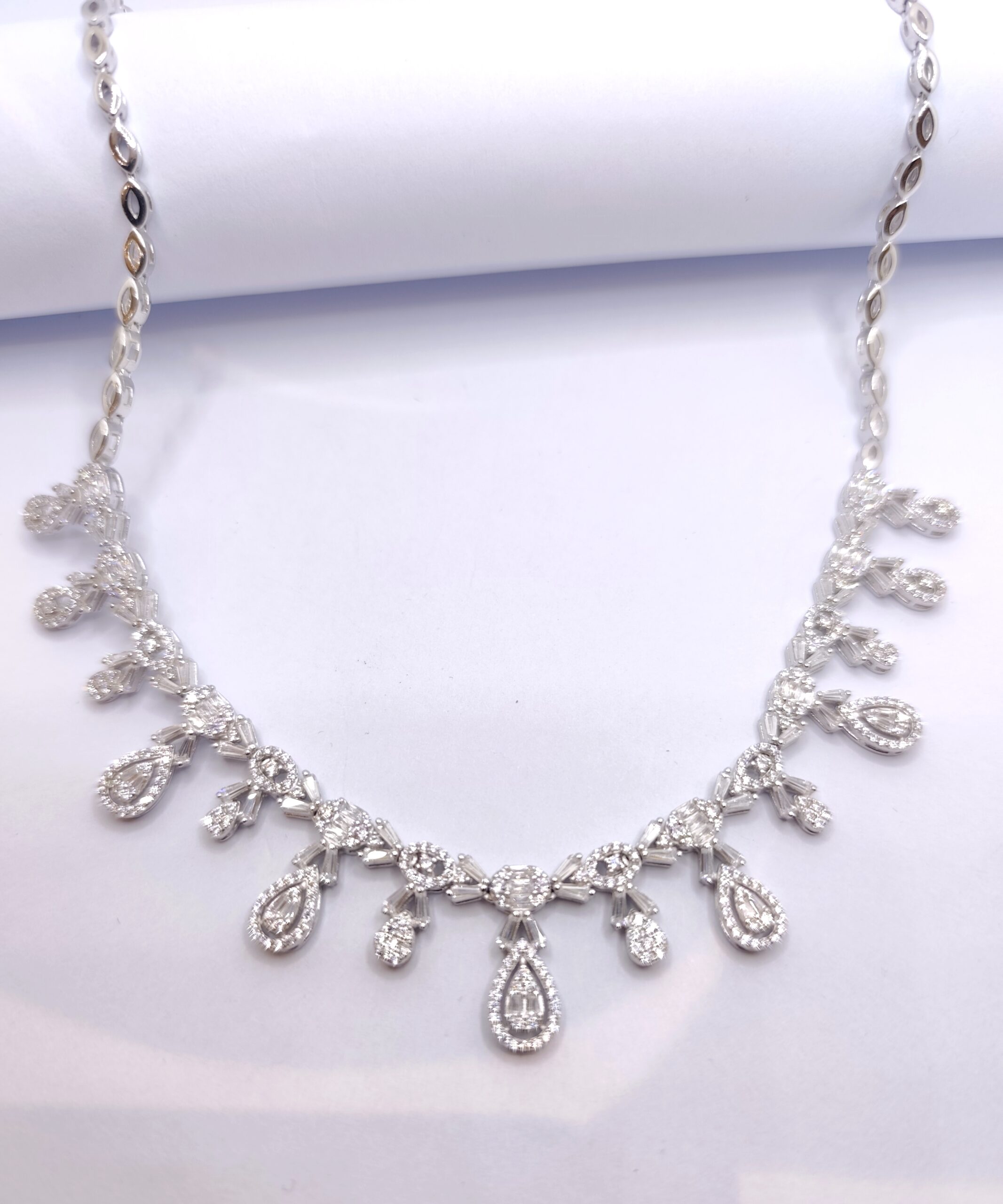 Σετ κολιέ και σκουλαρίκια από επιπλατινωμένο ασήμι 925 λευκού χρώματος.