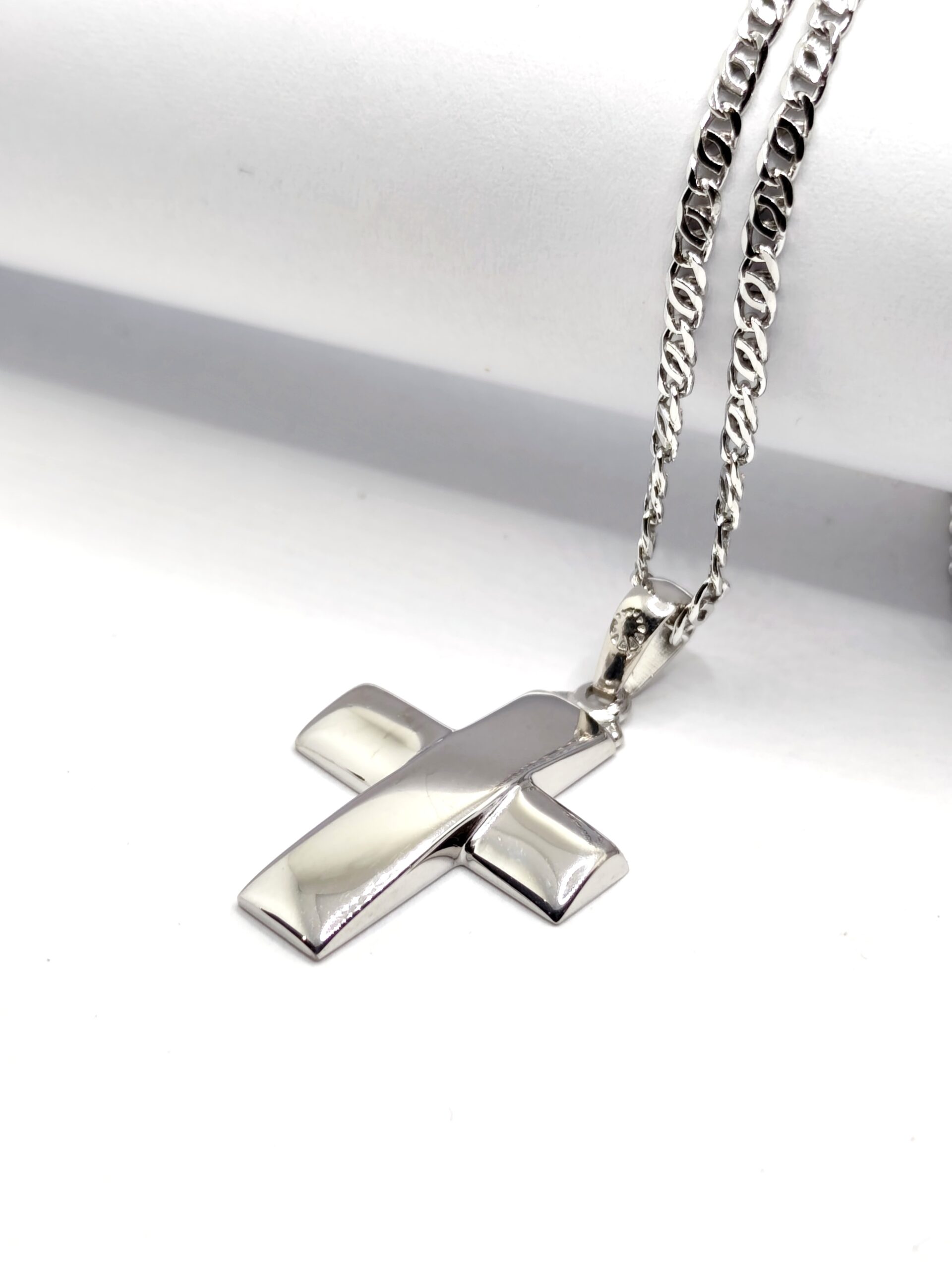 Σταυρός από επιπλατινωμένο ασήμι σε λευκό χρώμα.