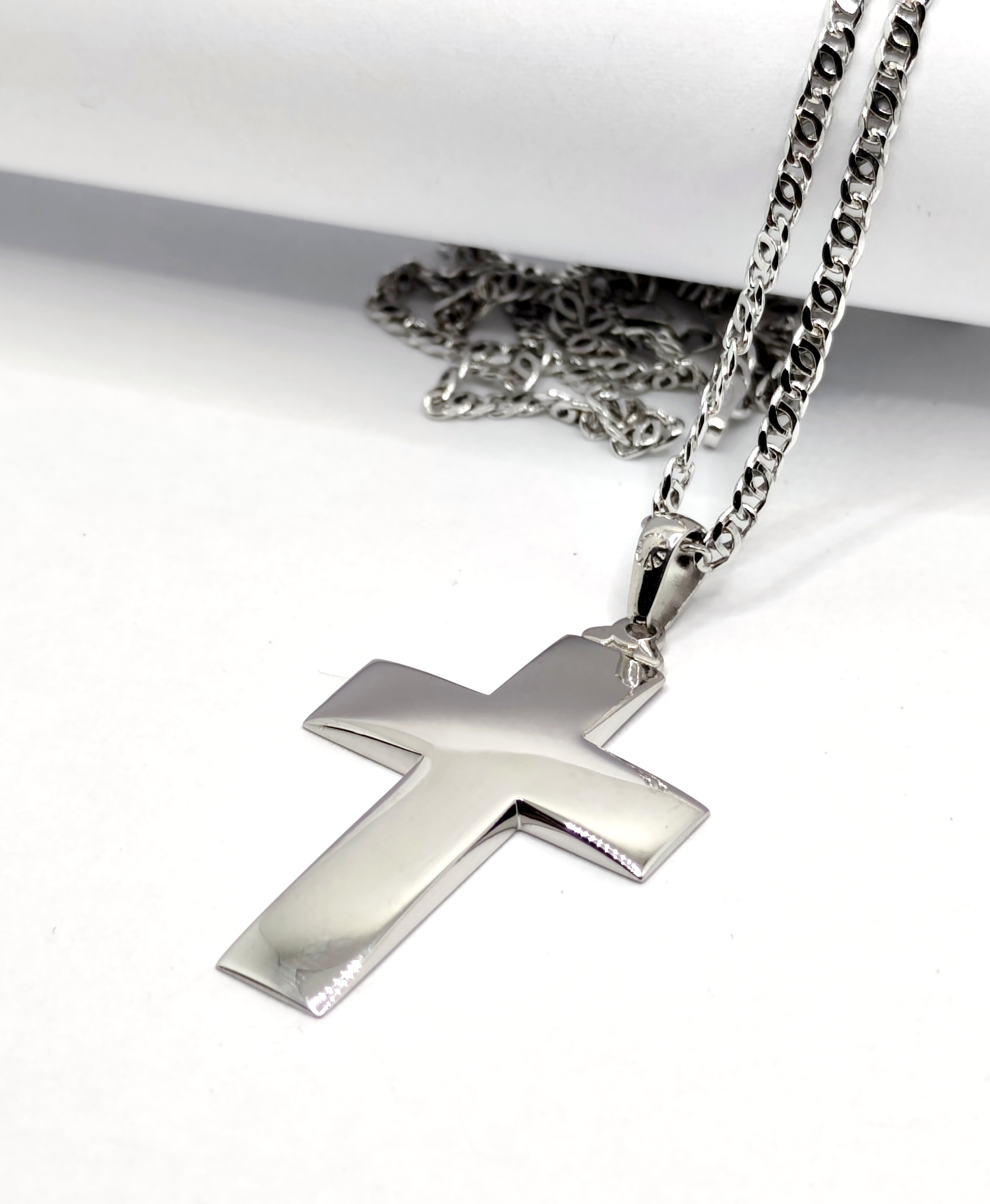 Σταυρός από επιπλατινωμένο ασήμι σε λευκό χρώμα.