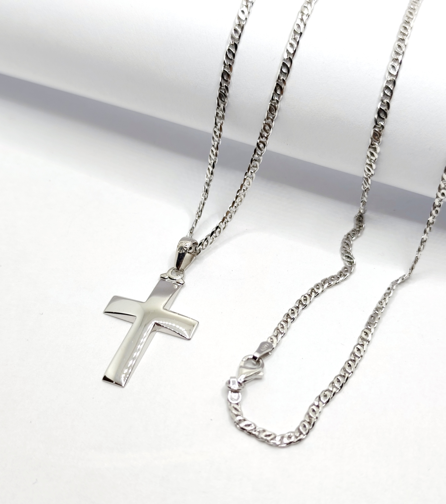 Σταυρός από επιπλατινωμένο ασήμι σε λευκό χρώμα.